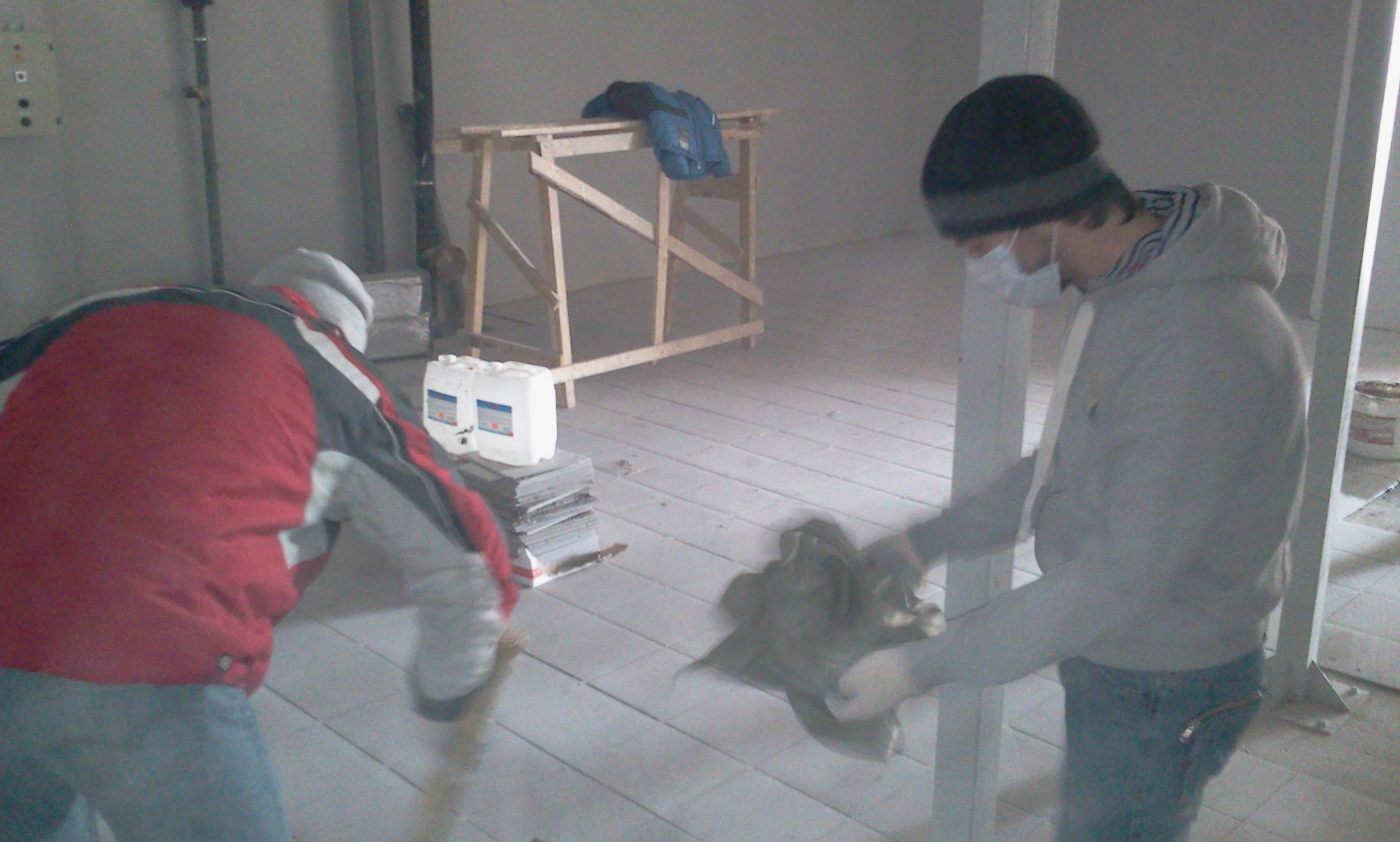 Главный «враг» всех дверей Макар Герман за работой (справа)