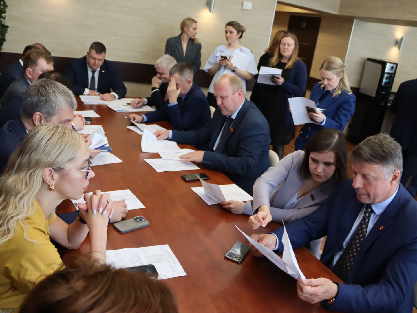 Завершилось заседание уже традиционной выставкой. На этот раз экспозицию перед залом заседаний составили работы пермских художников, созданные в рамках проекта регионального парламента к 80-летию Великой Победы «Край трудовой доблести». Авторы работ Ирина Вахова, Татьяна Стародубцева, Татьяна Смышляева, Владимир Кайгородов и заслуженный художник России Валентин Жданов отразили в своих картинах личные истории, связанные с Великой Отечественной войной: воспоминания о семьях, друзьях, соседях и трудовых подвигах земляков. У каждого из них нашлась своя история, отраженная в этих работах. Это история семьи, друзей, близких и соседей, опаленная войной и пронесенная через годы.