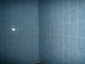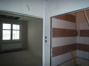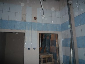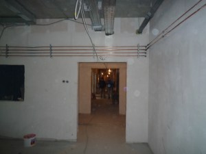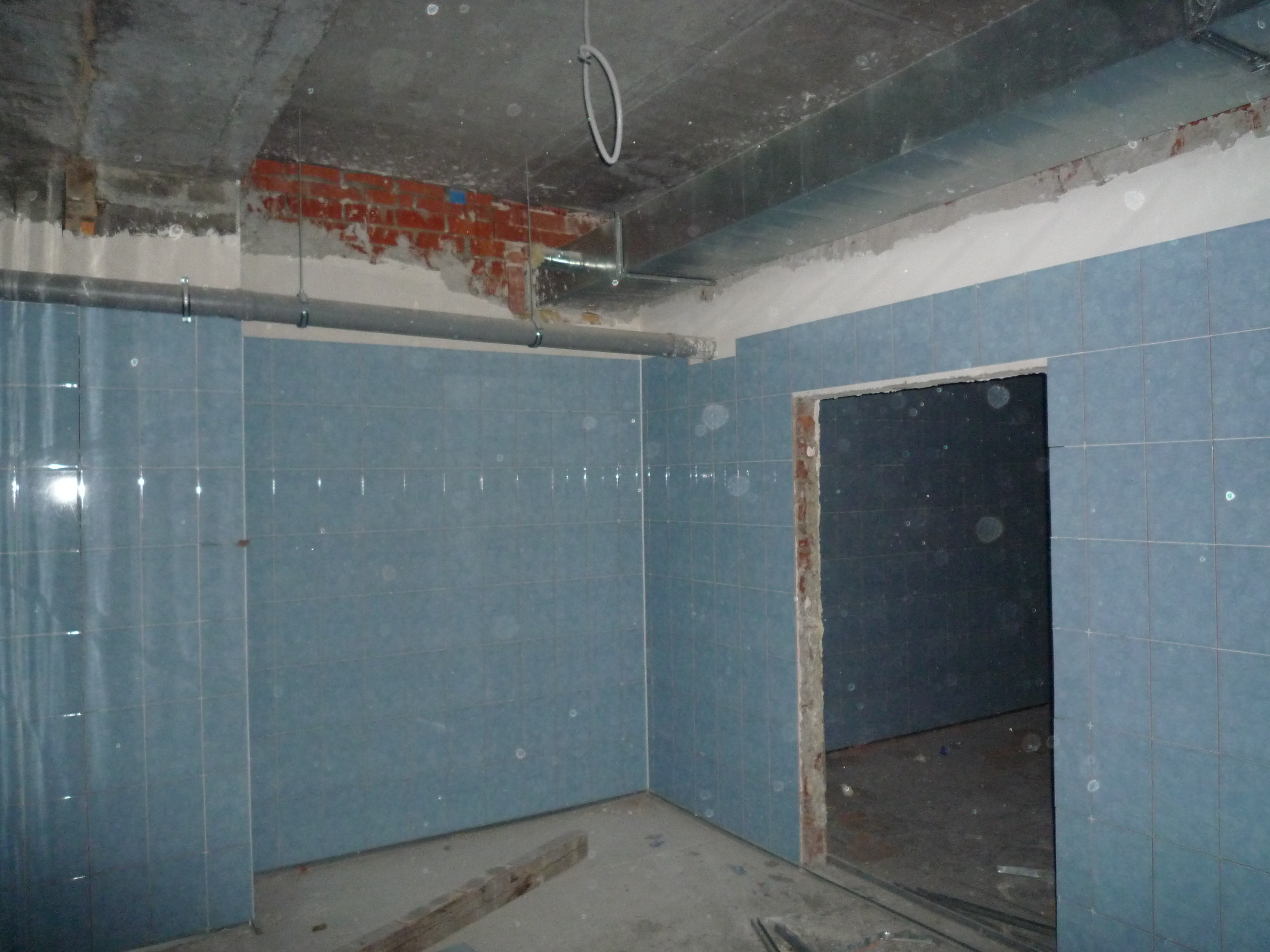 Тот же субподрядчик работает на цокольном этаже. В течении предыдущей недели укладывалась плитка на полах и стенах санузлов.