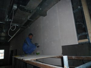 На пищеблоке активно ведутся работы силами ООО «Гражданстройпроект».Привлечено максимальное количество рабочих. Подрядчик гарантирует окончание работ по укладке плитки к концу марта. Шпаклевка и покраска потолков должна быть закончена к концу апреля.